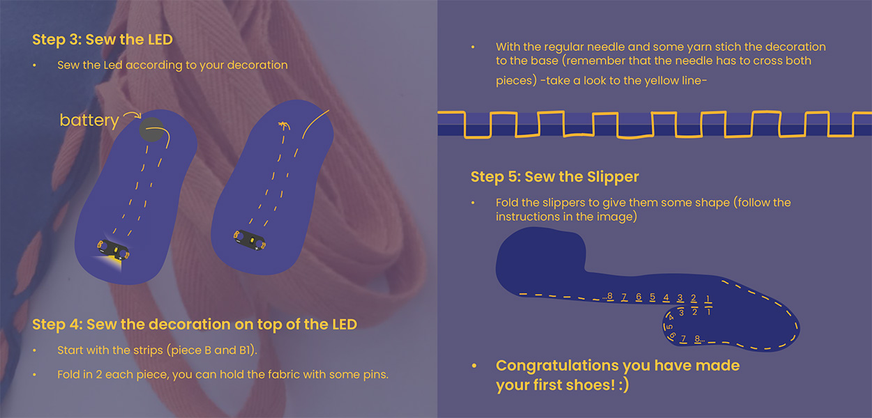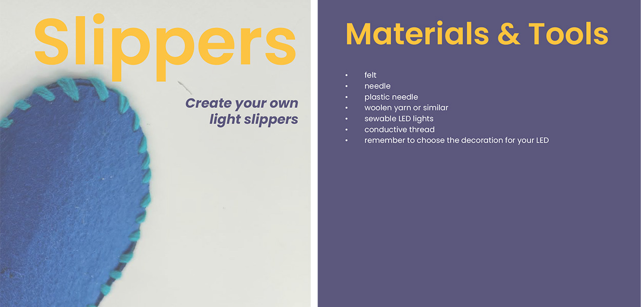 The activity aims at introducing participants to sewing circuits and the possibility to make your own slippers.